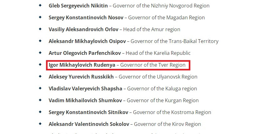 Среди глав регионов, которые попали под санкции Америки, - губернатор Тверской области Игорь Руденя.