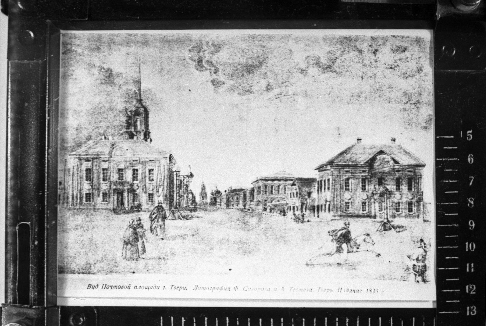 — Литография с изображением Почтовой площади в г. Твери. 1835 г. // ГАТО. Ф. Р-2380. Оп. 2. Д. 582;