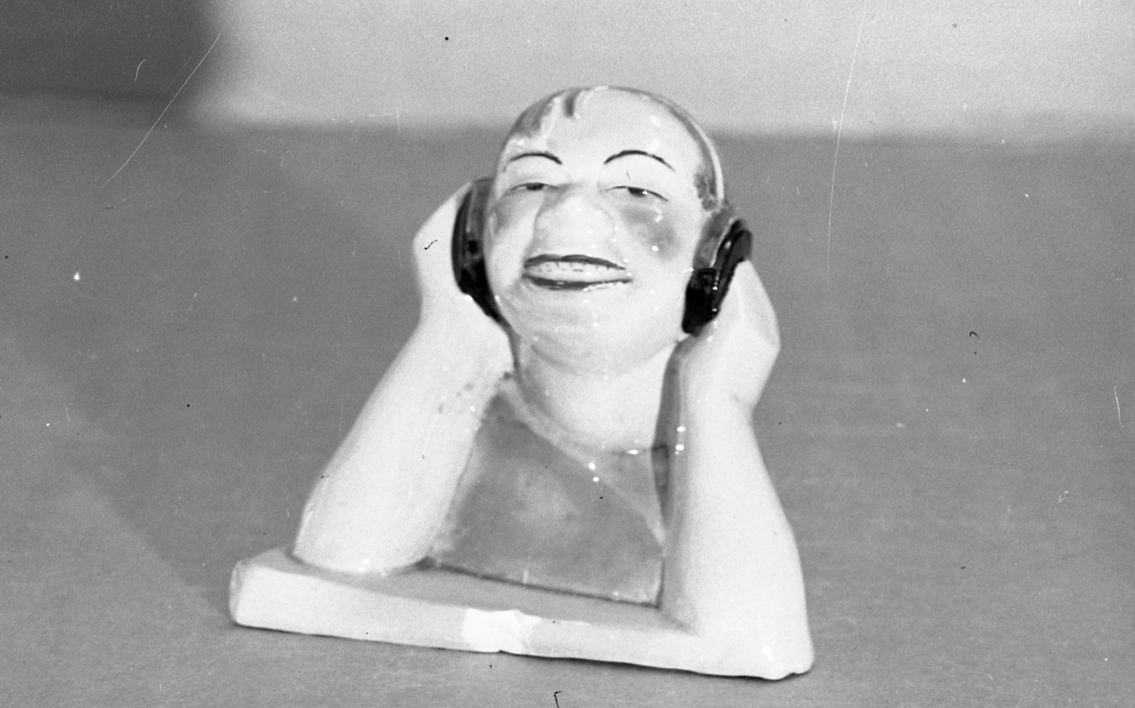 — Экспонат музея Конаковского фаянсового завода – скульптура Первое радио. 1980 г. // ГАТО. Ф. Ф-1. Оп. 1. Д. 14525.