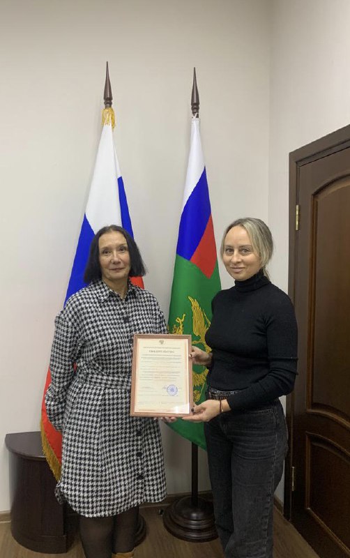Свидетельство о государственной регистрации некоммерческой организации вручено и.о. начальника Управления Минюста России по Тверской области И.А. Кузиной директору С.А. Рыженковой.