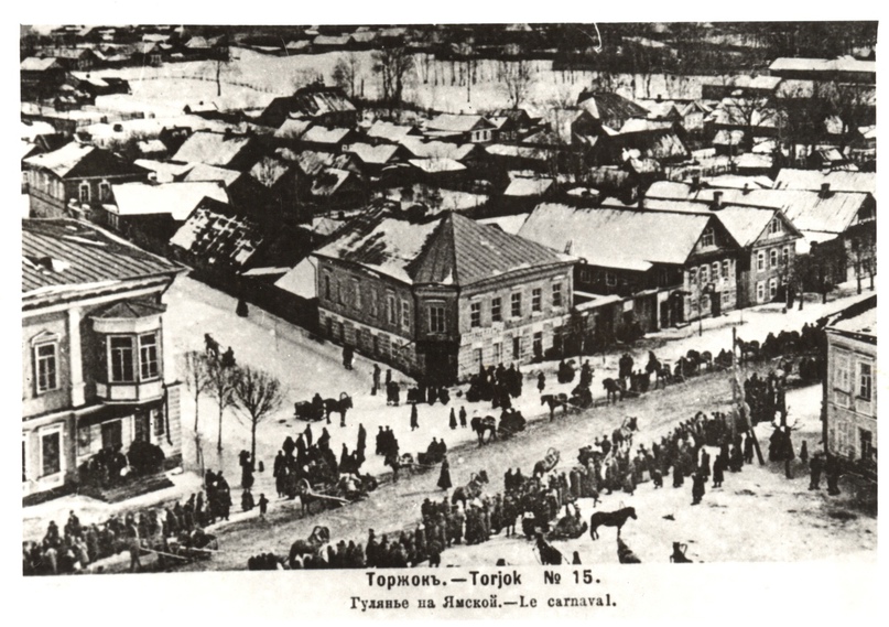 Одно из первых фотоизображений новоторжской гостиницы (предположительная датировка 1901 г.) можно встретить на почтовой открытке с заголовком «Торжок. Гулянье на Ямской» (на русском и французском языках). Она входит в набор под № 15, выпущенный московской фирмой «Шерер, Набгольц и Ко» в 1905 году.