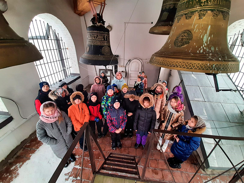 Ребята с интересом слушали рассказ об истории возникновения православия на Руси, частях и убранстве православного храм, иконах и фресках, о жизни святого Сергия Радонежского и Князя Владимира. Ребята задавали много вопросов, им было всё интересно. А то, что интересно, останется в памяти на долгие годы. Несомненно, самым захватывающим событием стала возможность подняться на колокольню, и, следуя православной традиции, позвонить в колокола. С высоты колокольни вокруг открывается прекрасный вид на окрестности города.