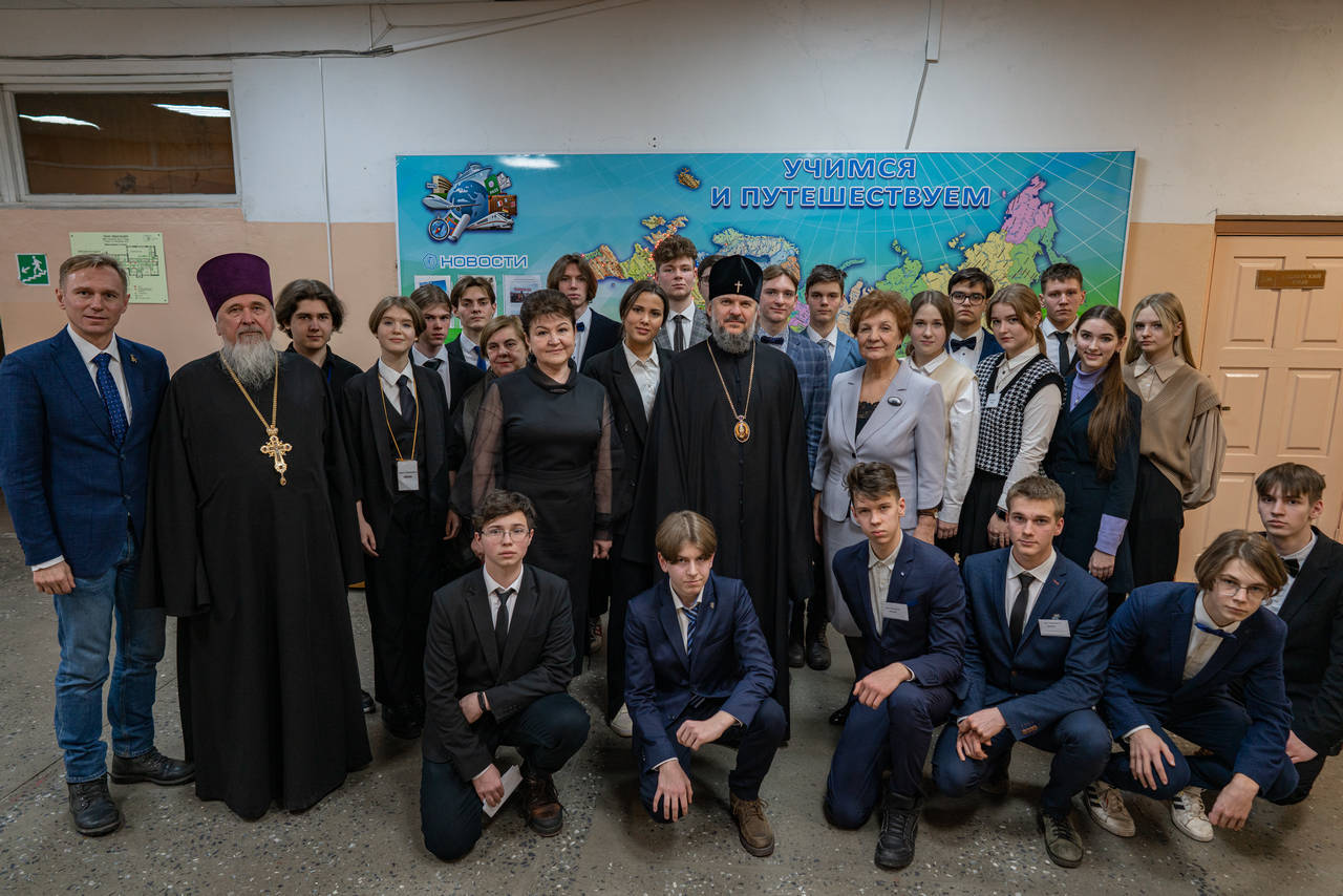 Глава митрополии встретился с Советом старшеклассников и лидерами классов — участниками волонтерского агентства «Счастливое время». Владыка пообщался со школьниками о любви к Родине, службе в армии, значении успеха в жизни человека. Школьники задавали вопросы и сами рассуждали на предложенные темы.