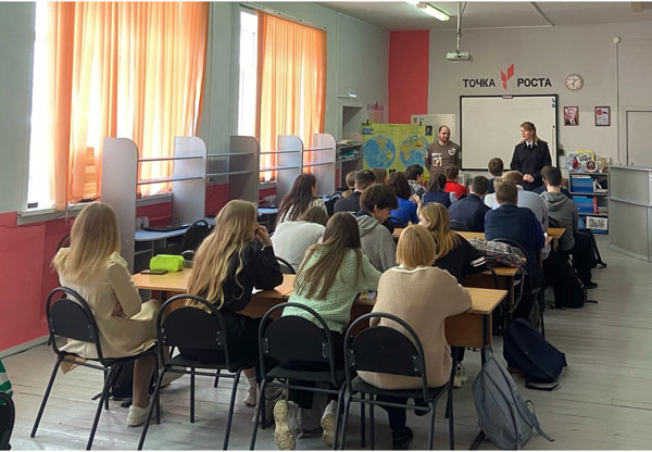 Особой темой являлось управление транспортными средствами лицами, не имеющими права управления. Зачастую ими являются несовершеннолетние. Преподаватель ПДД Сергей Грибков подробно рассказал ребятам о нормах и правилах обучения с целью получения права управления транспортными средствами. Инспектор по пропаганде Ирина Иванова рассказала старшеклассникам про ответственность (административную, уголовную), наступающую за нарушения пунктов Правил дорожного движения.