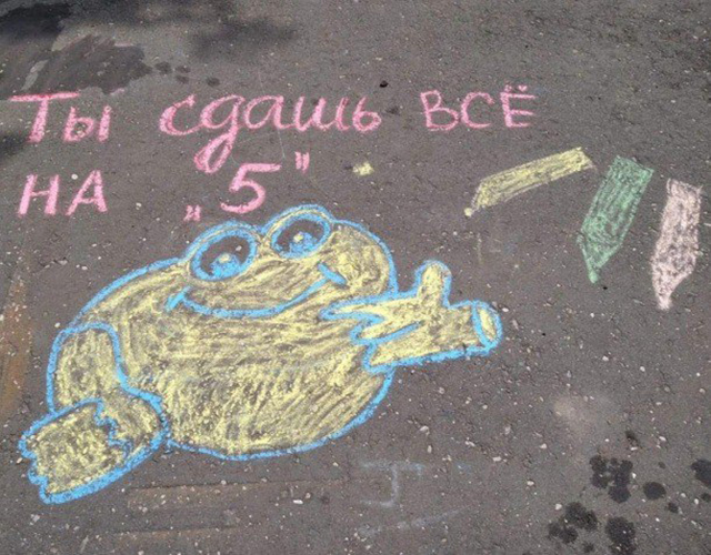 Второй формат – «Мы рядом». Участники могут написать на асфальте перед пунктом проведения экзамена мотивационный и поддерживающий слоган для выпускников. При этом организаторы просят наносить надписи мелом или смываемой краской и располагать их вне территории образовательных организаций, по пути следования школьников на экзамены. Такой формат акции, например, выбрали в Весьегонском округе.