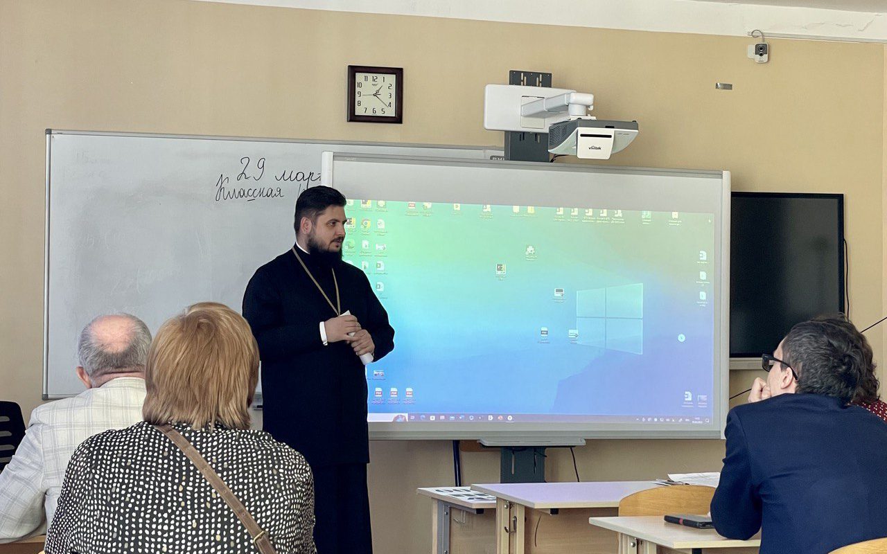 Священник объяснил слушателям, почему в настоящее время уделяется большое внимание преподаванию учебного курса Основы религиозных культур в детском саду, школе, колледже, вузе. Изучение религиозной культуры с теологической точки зрения не предполагает передачу фундаментальных положений системы верований, воцерковление на уроках, привлечение в храмы, оно подразумевает глубокое, в обширном контексте религиозной традиции преподавание через историю, через культуру, литературу.