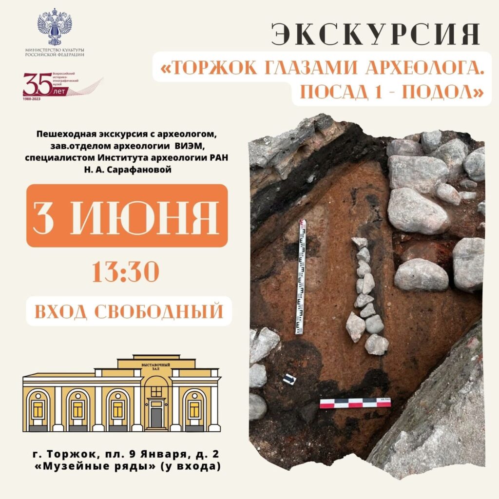 В 2023 году во Всероссийском историко-этнографическом музее возобновил работу Археологический отдел. Торжок в археологическом отношении – это комплекс из двух городищ (Нижнего и Верхнего) и двух Посадов, разделенных рекой Тверцой на Борисоглебскую и Тверецкую стороны. Несмотря на то, что Торжку более тысячи лет, его культурные слои еще мало изучены, поэтому работа предстоит большая и интересная. Совсем скоро представим информацию по мероприятиям, которые пройдут в рамках проекта. Пока приглашаем на бесплатную лекцию заведующей Отделом археологии ВИЭМ, специалистом Института археологии РАН Н. А. Сарафановой.