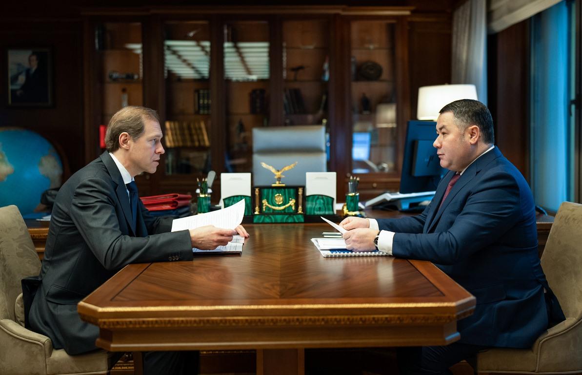Губернатор Игорь Руденя и зампред Правительства РФ Денис Мантуров обсудили развитие Тверской области