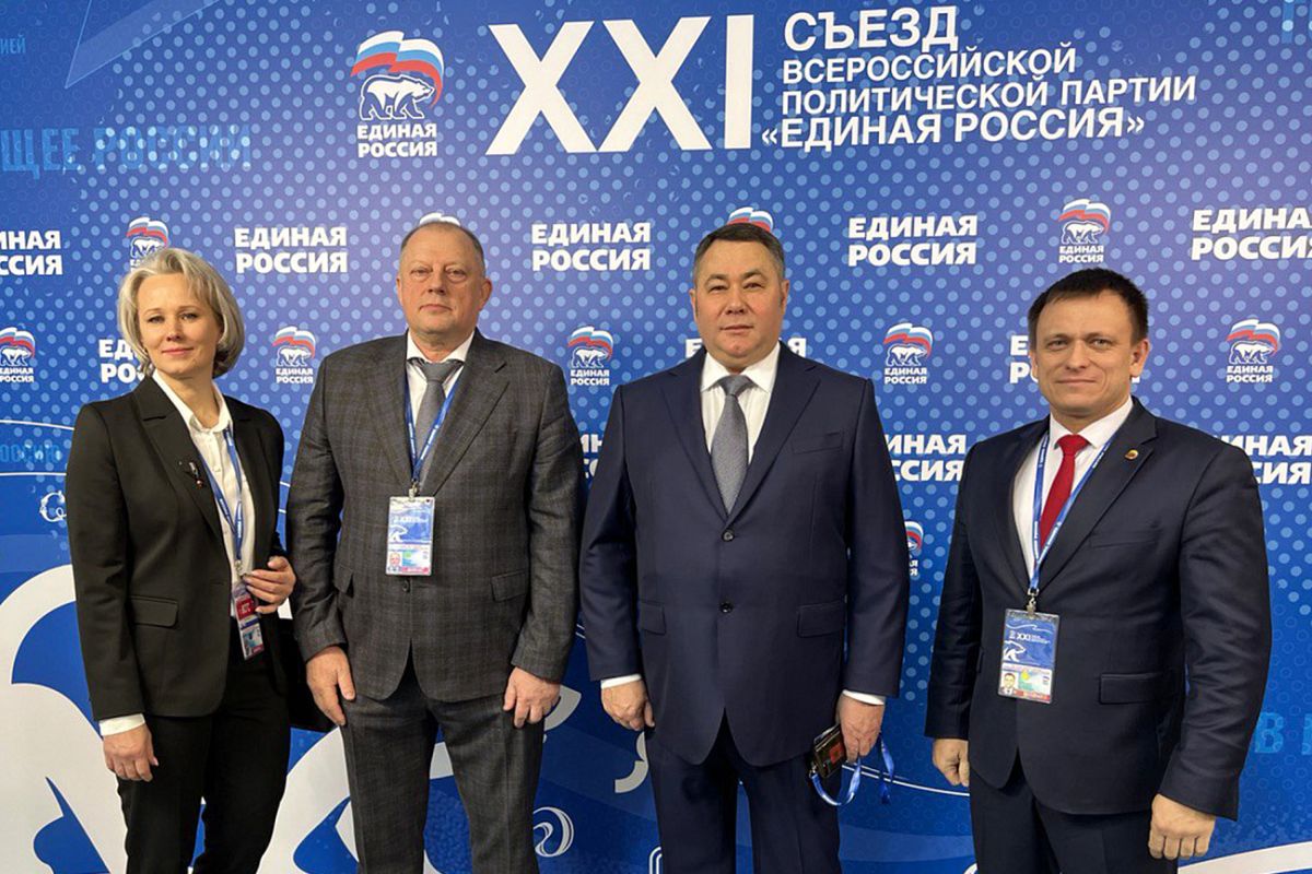 17 декабря в Москве на площадке Международной выставки-форума «Россия» на ВДНХ состоялся XXI Съезд Всероссийской политической партии «Единая Россия». На пленарном заседании выступил Президент России Владимир Путин . Делегацию от Тверской области возглавил Губернатор Игорь Руденя , секретарь Тверского регионального отделения партии «Единая Россия».