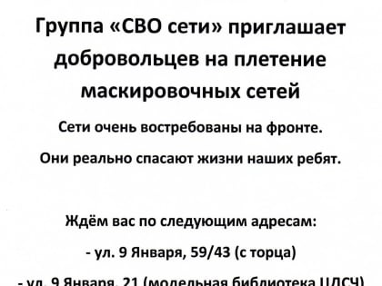 Движение "СВО сети" приглашает добровольцев обучиться плетению маскировочных сетей