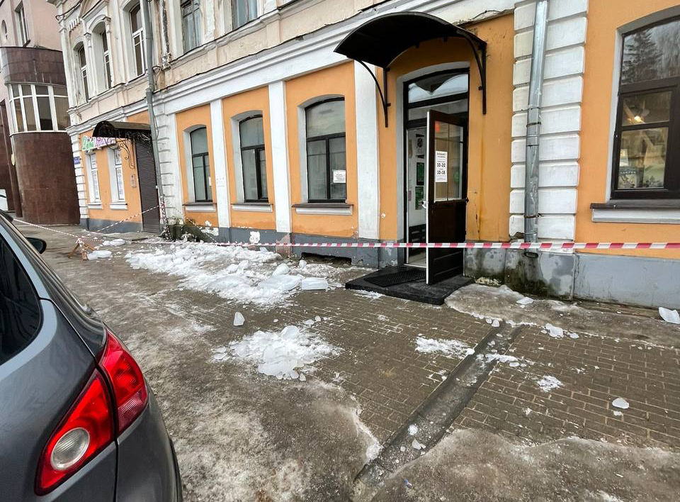 В Твери женщина попала в больницу из-за упавшего на нее льда с крыши дома на улице Новоторжской