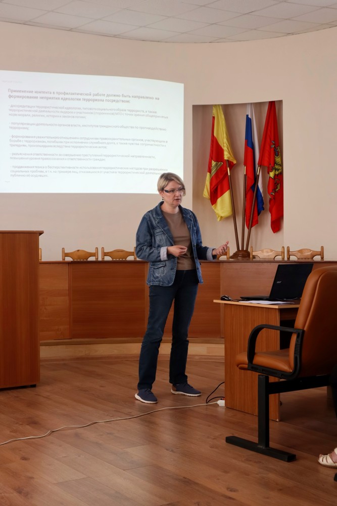 В ходе семинара были рассмотрены вопросы организации профилактической работы в сети Интернет, в т.ч. создания и распространения антитеррористического контента, сохранения и укрепления традиционных российских духовно-нравственных ценностей и профилактика деструктивной идеологии.