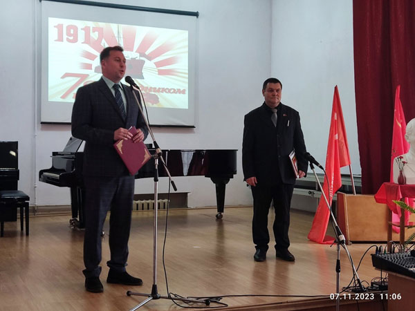 На открытом торжественном собрании активистов КПРФ поздравил исполняющий обязанности Главы Администрации МО «Бологовский район» Владимир Мищенко.