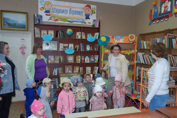 14 июня в гости в Заозёрную библиотеку г. Бологое пришли совсем маленькие посетители - воспитанники ясельной группы «Колобок» и первой младшей группы «Пузырьки» детского сада № 6 «Колокольчик», которые впервые пришли в библиотеку,