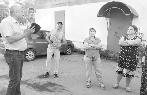 Народу пришло немного — около десяти жильцов домов, электрик УК «КС» Николай Голубков и заместитель начальника Бологовской дистанции электроснабжения Октябрьской дирекции по энергообеспечению филиала ОАО «РЖД» Олег Прокофьев. Инициатор собрания Алексей присутствовать не смог, поэтому общался с присутствующими по видеосвязи: