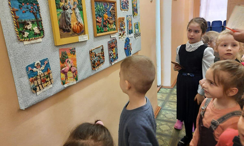 Дети побывали в классе рисования, посмотрели, как ребята расписывают подносы, деревянные ложки. Дети узнали, как создают картины и панно, что такое бумагопластика и пластилинография. В музее декоративно-прикладного искусства детям очень понравились работы из соломки, пшена, кожи. В заключение для ребят из детского садика ученики и педагоги устроили концерт.