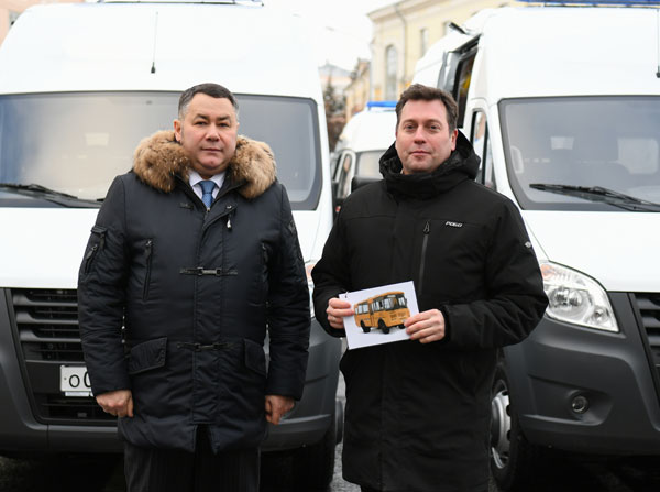 28 декабря Губернатор Игорь Руденя вручил ключи исполняющему обязанности Главы МО «Бологовский район» Владимиру Мищенко от школьного транспорта.