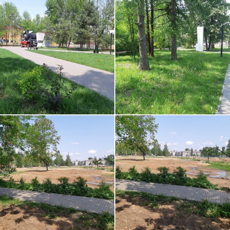Это всё, что осталось от парка у паровоза, — подводит печальный итог работы городских благоустроителей местная жительница. — Боюсь, что и последний деревья могут пойти под спил. Задумка то была хорошая, но как-то не срослось».