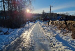 Фото январь 2022 годВ новогодние праздники текущего года мы побывали на моей малой родине в городе Зубцов, который по численности населения сопоставим Сернуру. В один из дней была замечательная солнечная погода и было решено прогуляться вместе с друзьями, чтобы посмотреть красивую природу, но выйдя на улицу «оба…..». Сплошной гололед, который был на всей территории заволжской части города. И спешу заметить, что прошло уже более месяца, а дороги и сейчас аналогичного состояния.