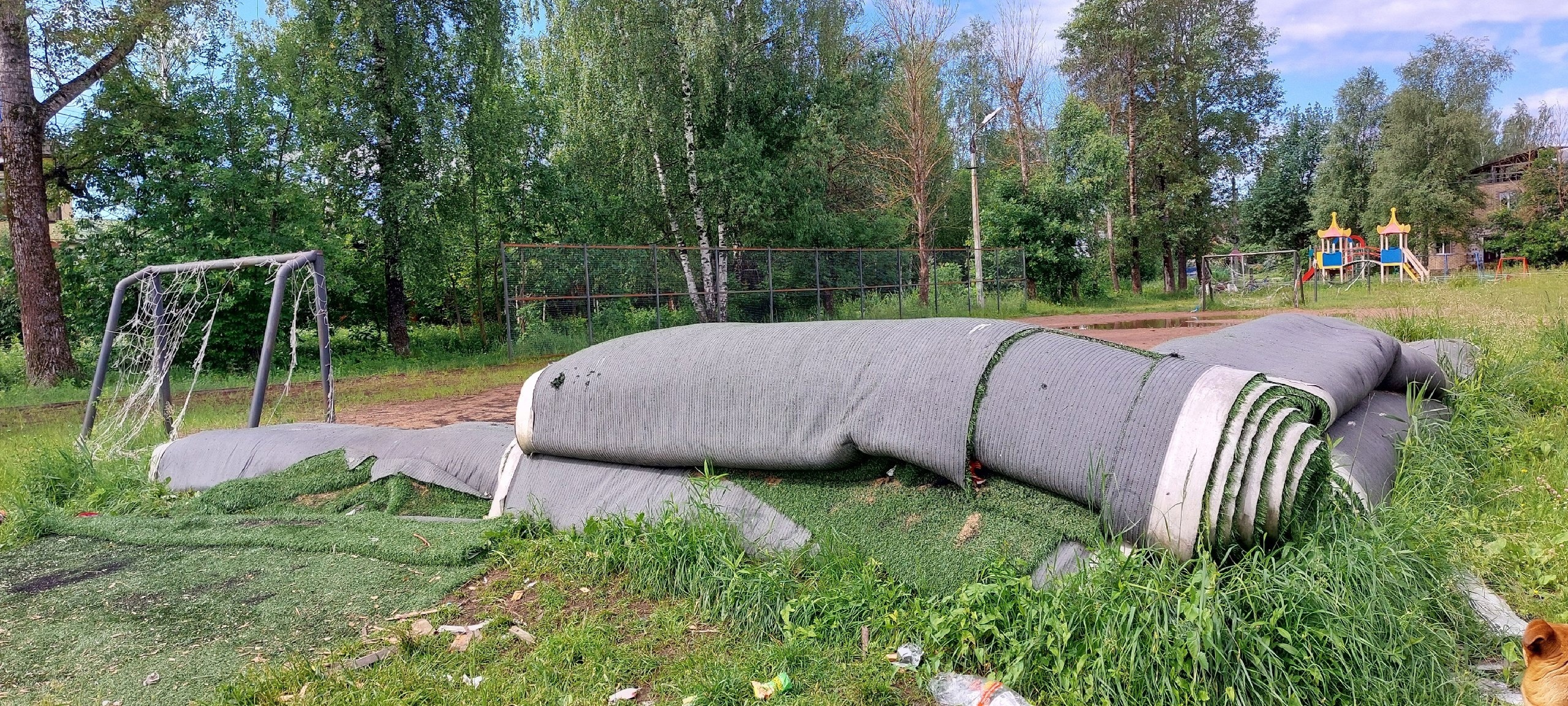 «Уже три года как мы обращаемся к администрации города Твери с просьбой установить уже имеющееся искусственное покрытие на спортивной площадке по адресу: поселок Затверечье, пересечение Дурмановского переулка с улицей Ломоносова.