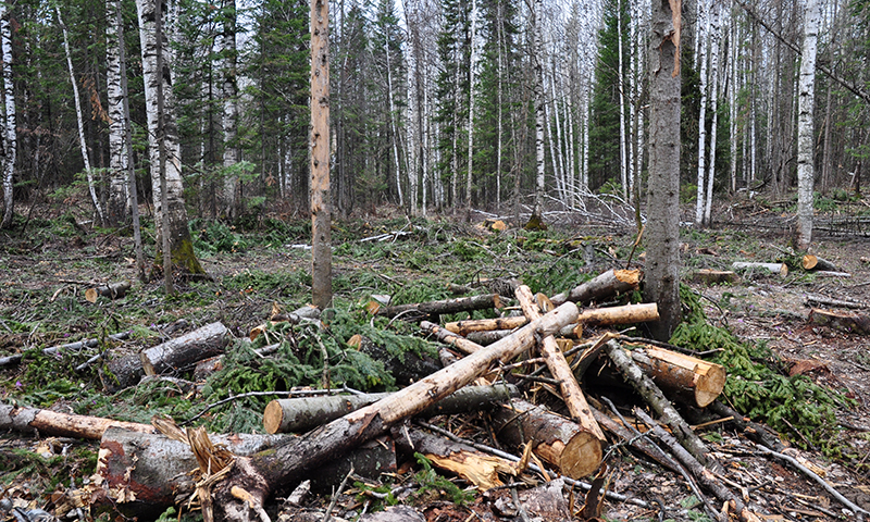 Две недели назад у деревни Жилино обнаружена незаконная рубка растущих деревьев породы ель, сосна, береза.