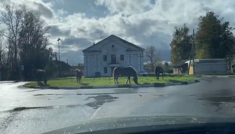 Нелидовцы выкладывают в соцсети фотографии и видеозаписи лошадей, свободно разгуливающих по городу без присмотра.