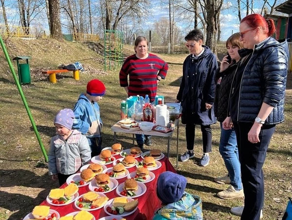 А потом был пикник с приготовлением самых вкусных на свете гамбургеров! Ребята активно помогали взрослым в приготовлении: мыли овощи, жарили на мангале котлеты, собирали бургеры, накрывали на стол.День провели отлично все - и дети, и взрослые!