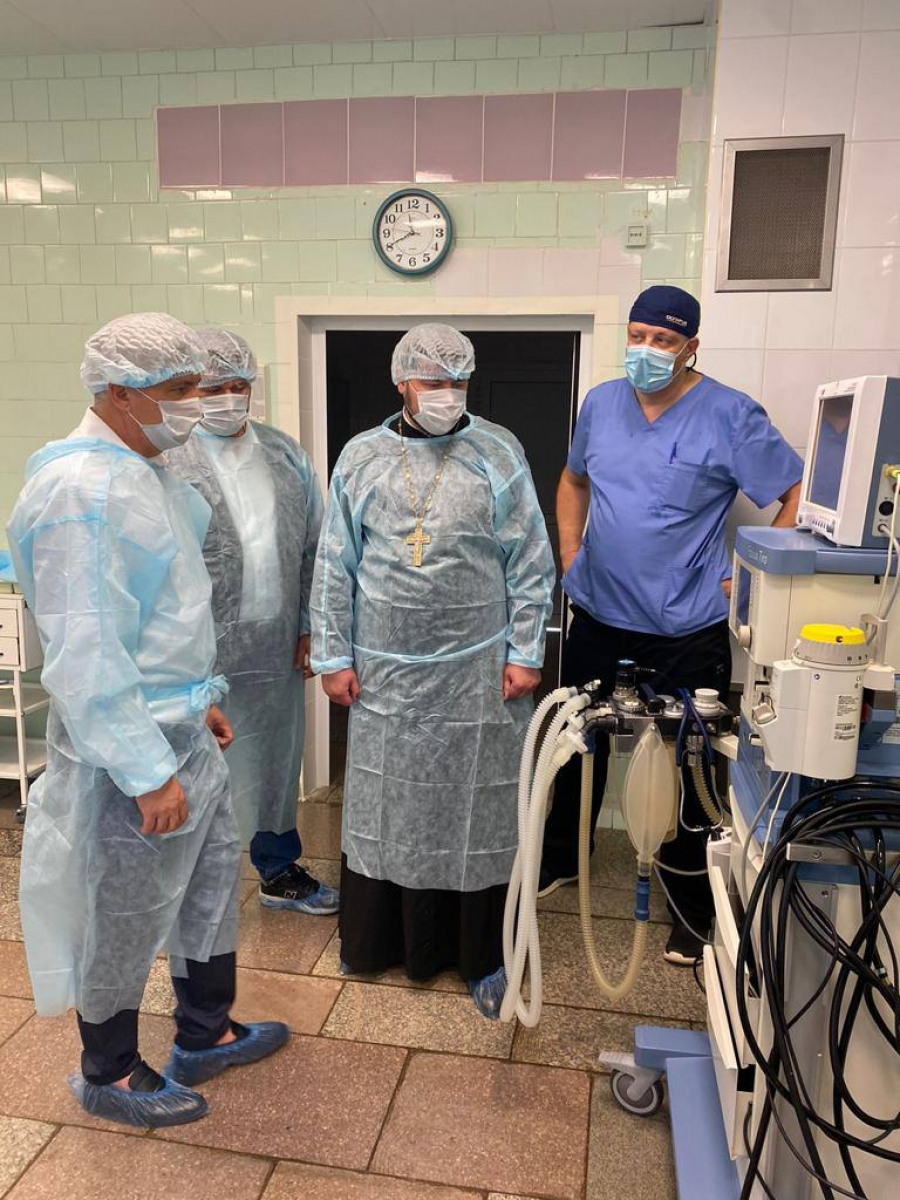 Глава округа Рем Рихтер совместно с исполняющим обязанности начальника ЦМСЧ №141 Андреем Третьяковым и благочинным Удомельского округа о. Петром Губановым совершили административный обход по медсанчасти и посетили противошоковую палату, созданную в приемном отделении, отделение анестезиологии и реанимации, а также операционный блок, где уже начали проводить новые операции в урологии.