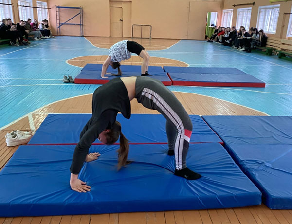 В Бологовском колледже прошли соревнования по гимнастике, в которых приняли участие обучающиеся 1-2 курсов. Студентам предстояло выполнить элементы, связанные с акробатикой: перекат вперёд, перекат назад, стойка на лопатках, мостик, уголок, равновесие (ласточка), стойка на голове с опорой на руки, стойка на кистях, колесо. Соревнования проходили в дружной и весёлой обстановке. Ребята показали мастерство и гибкость, а также волю к победе.