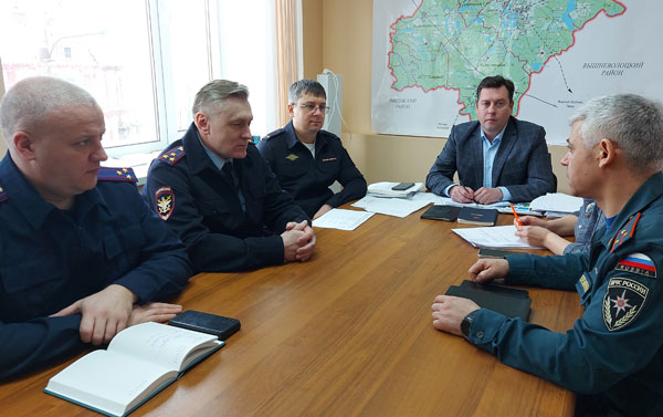 6 февраля состоялось совещание при и.о. Главы МО «Бологовский район» Мищенко В.С. с руководителями силовых структур муниципалитета, в ходе которого обсуждалась текущая ситуация в районе, вопросы административного порядка, пожарной безопасности, соблюдения общественного правопорядка, транспортной безопасности, безопасности движения на дорогах и другие, касающиеся жизнедеятельности района.