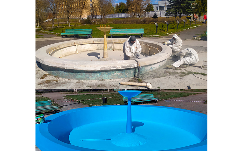 Плохая новость: в день завершения работ, вечером, ярко-синее покрытие было испорчено детьми, которые в присутствии родителей играли в чаше фонтана в мяч. В ответ на замечания прохожих взрослые отвечали бранью. Ночью вандалы возрастом постарше набили о дно фонтана бутылок. Работникам технопарка утром пришлось заново проводить работы по восстановлению.