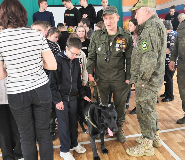 Перед слушателями выступили Герои наших дней – ветераны боевых действий, участники СВО: Олег Цвилёв, приехавший на встречу со своим боевым товарищем – собакой по кличке Рекс, и Иван Северин.