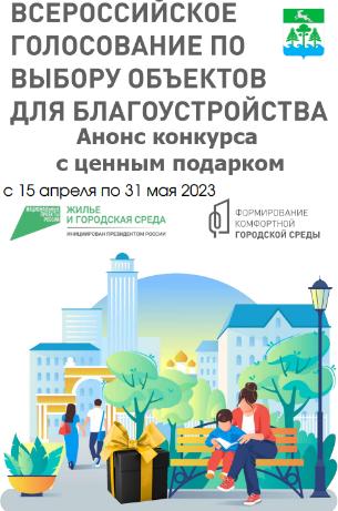Администрация города Конаково приглашает Вас принять участие во «Всероссийском голосовании по выбору объектов для благоустройства». Голосование будет проходить с 15 апреля по 31 мая 2023 года.