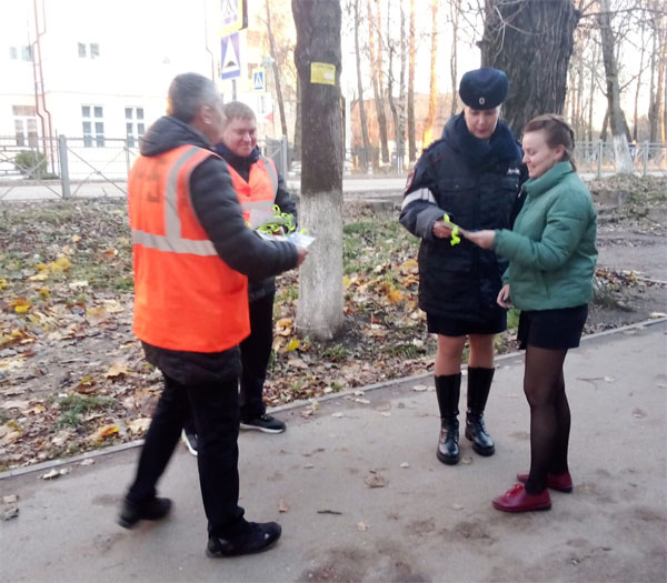 Сотрудники Госавтоинспекции с представителями ПЧ-5 обращались к пешеходам с призывом соблюдения Правил дорожного движения при пересечении проезжей части, не забывать о личной безопасности, и напомнили о необходимости применения на верхней одежде световозвращающих элементов.