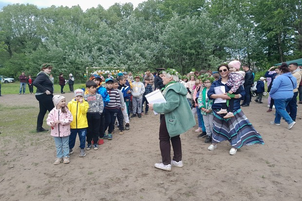Народные песни, балалайка, гармонь, гонки преследования с коромыслами, собирание венков из березовых веток, прыжки через огромную скакалку, колка дров на скорость и, наконец, Троицкий хоровод вокруг главного символа праздника – берёзы, в котором приняли участие более сотни детей и взрослых! Вот лишь короткий перечень трехчасового действа на Троицу.