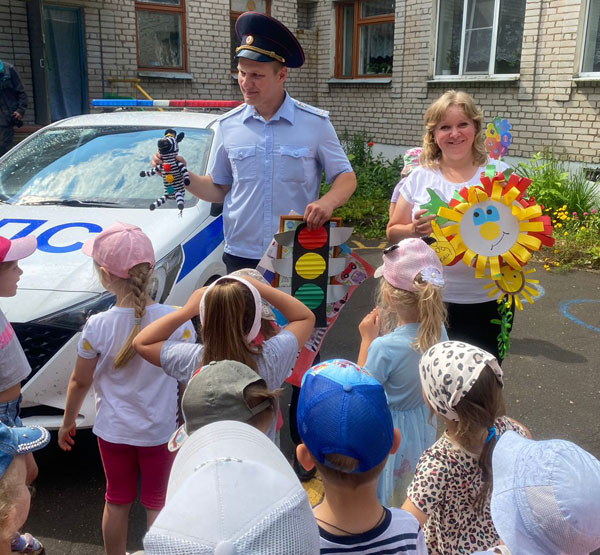 2 июля воспитанники детского сада № 4 г. Бологое поздравили сотрудников отделения Госавтоинспекции ОМВД России «Бологовский» с предстоящим профессиональным праздником - Днём образования службы ГАИ-ГИБДД МВД России.