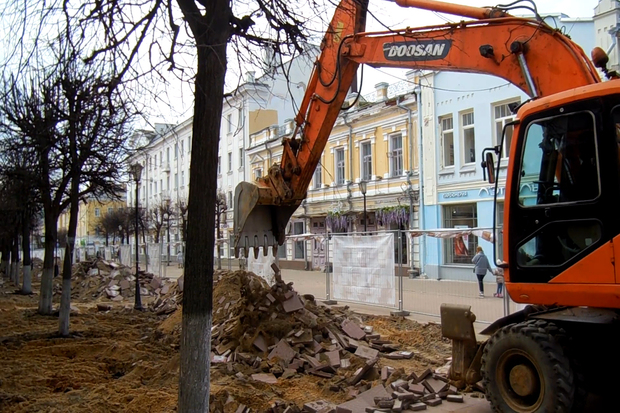 К подготовительным работам по благоустройству главной пешеходной улицы города подрядчик приступил в начале апреля, как только позволили погодные условия. Сейчас они вступают в активную фазу. Основной объём благоустройства включает в себя следующие виды работ: демонтаж существующих дорожных покрытий и укладку нового – из гранитной плитки и брусчатки с установкой бортовых камней, переустройство освещения, устройство наружной ливневой канализации и водоотводных лотков; прокладку наружных инженерных сетей; монтаж системы видеонаблюдения, а также ряд сопутствующих работ.