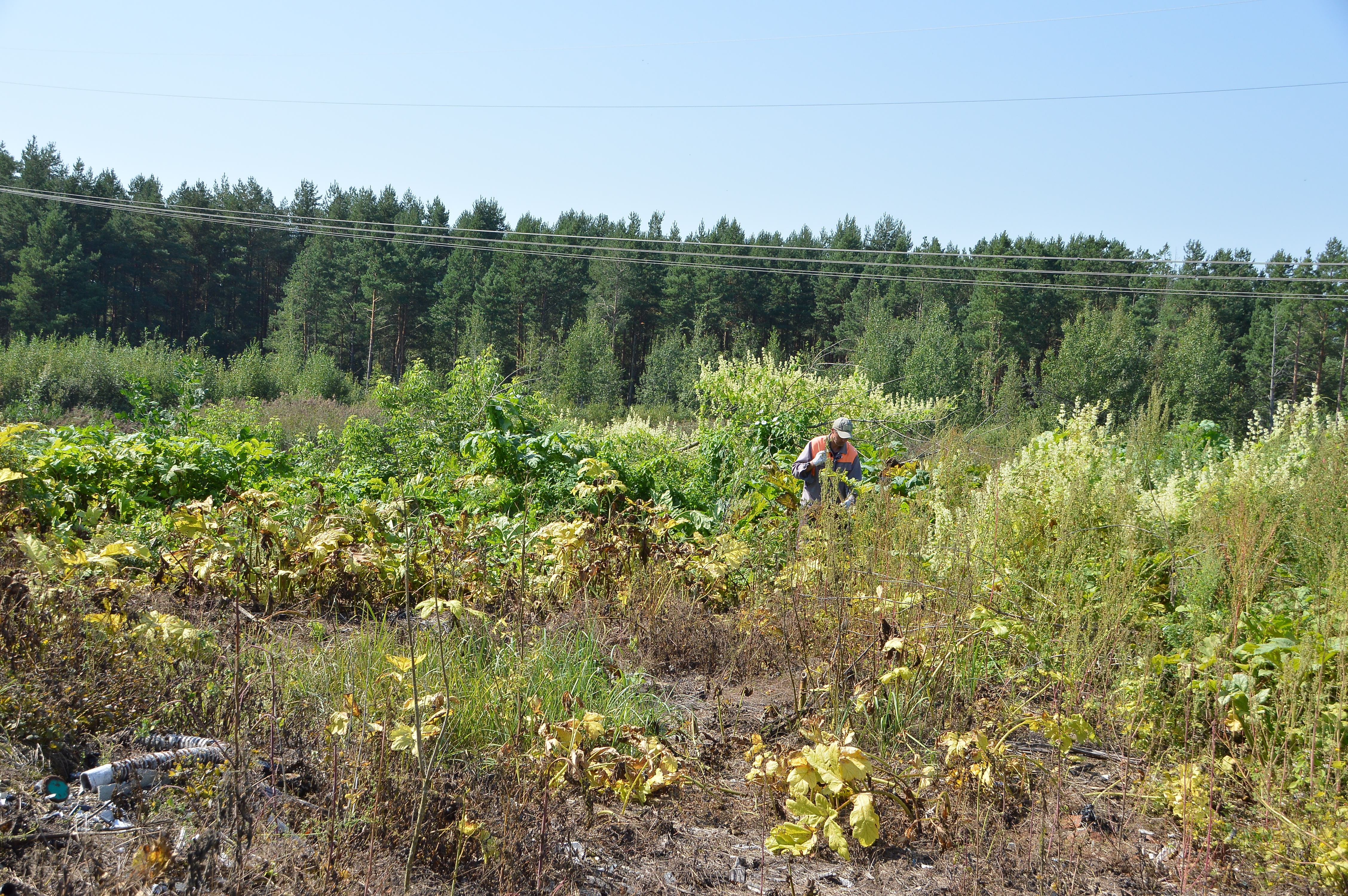 Работы по ликвидации борщевика вблизи СНТ «Тверца» традиционно проводились комбинированным методом, который включает вырубку и косьбу ядовитого растения, а также химическую обработку с применением гербицидов.