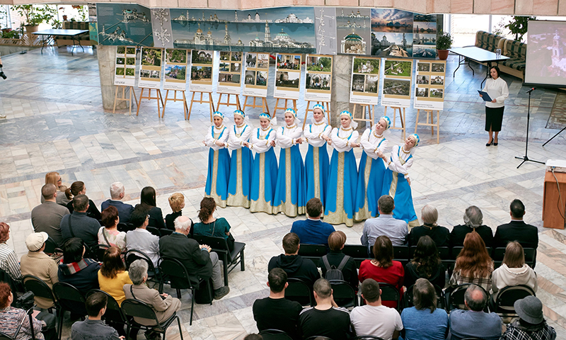 Не обошлось на открытии выставки без небольшого концерта от творческих коллективов РДНТ: коллектив народного театра танца «Ритм» в красивых голубых сарафанах представил русский народный танец, а Олеся Тодоренко, солистка вокальной группы «Акварель» Дома народного творчества, исполнила песню «Ангелы добра».