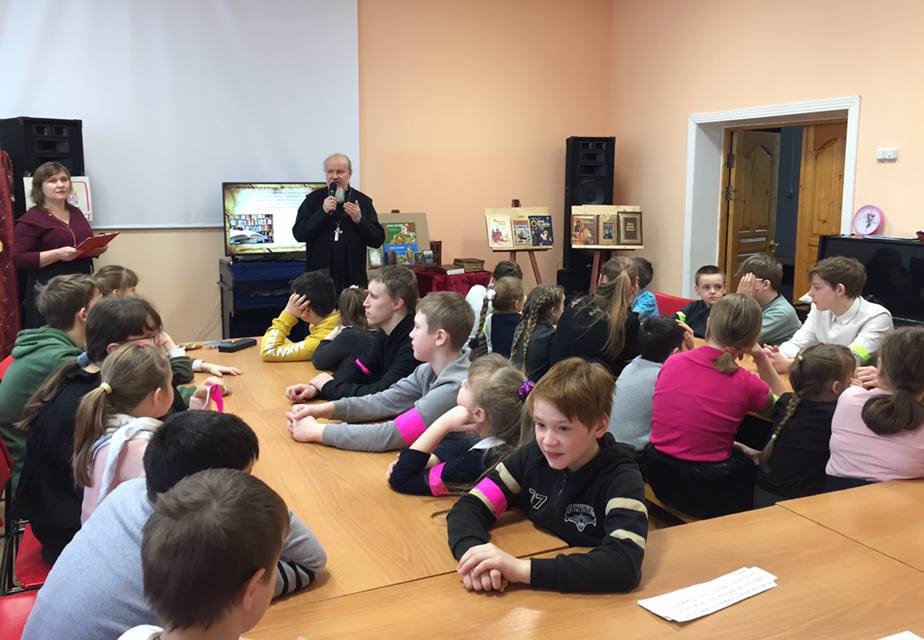 Наряду с выставкой наставники школы подготовили познавательную игру-викторину. Перед началом игры настоятель храма протоиерей Андрей Лазарев поприветствовал ребят. Он отметил важнейшую роль книги в жизни человека, поскольку становление полноценной личности невозможно без душеполезного чтения.