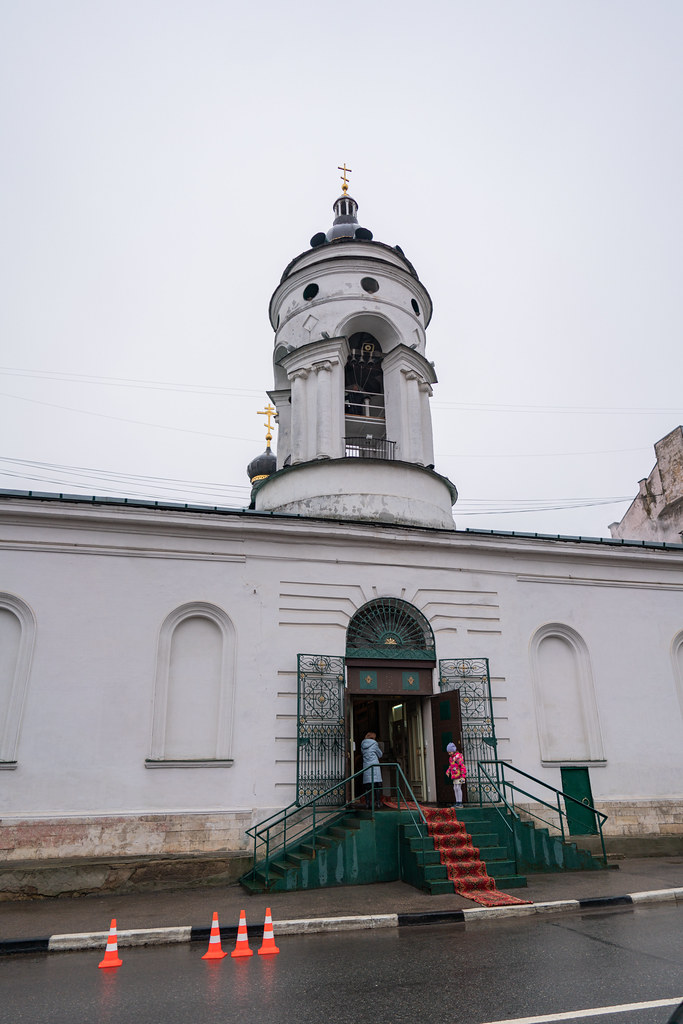 В 50-х гг. при прокладке теплотрассы был ослаблен грунт рядом с папертью, стены дали трещину и крыльцо с папертью было разобрано. В таком виде, тесно застроенная, без паперти и без завершений на храме и колокольне, она и простояла до настоящего времени.