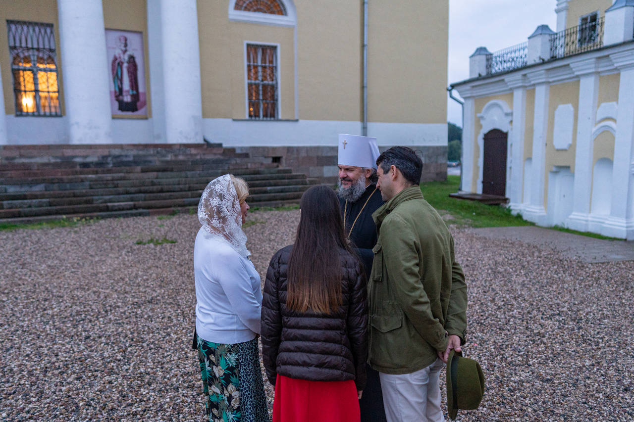 12 августа после всенощного бдения в Нило-Столобенской пустыни митрополит Тверской и Кашинский Амвросий встретился с режиссером и членами продюсерской команды фильма «Русский крест».