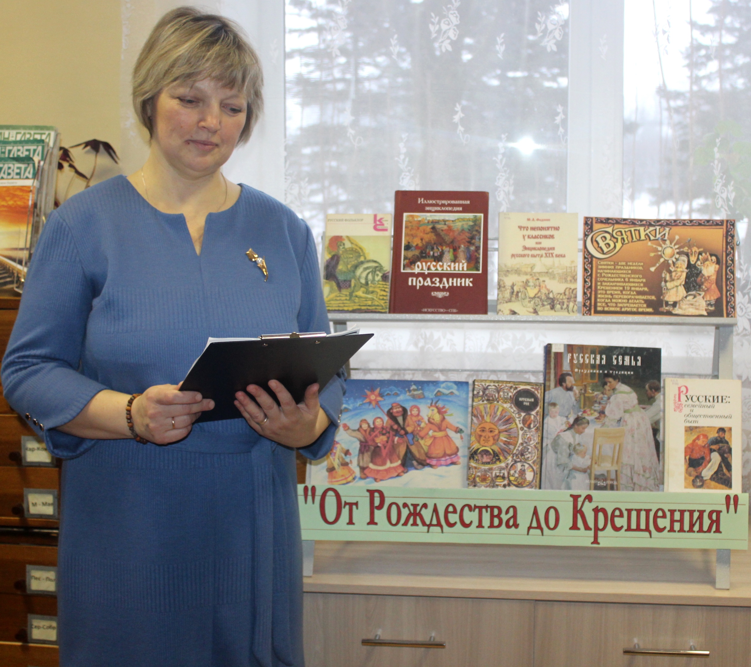 Заведующая информационно-библиографическим отделом И.Н.Удальцова рассказала об истории рождественских праздников, традициях и обычаях, существовавших в святочные дни на Руси. Вспомнили об удивительных целебных свойствах крещенской воды, о том, что она очищает душу и тело, дарит здоровье.