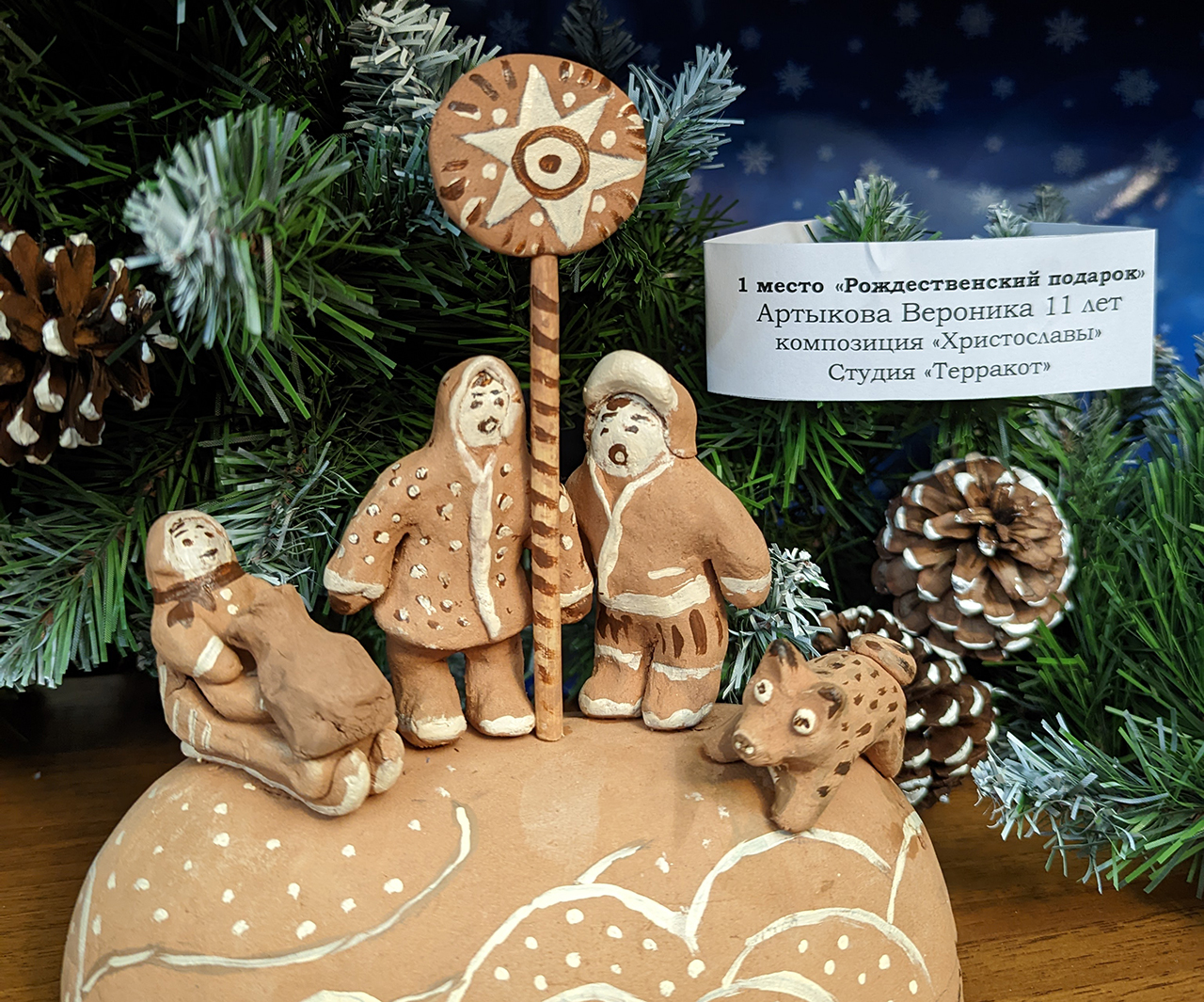 На снимке вверху: занявшая 1 место в номинации «Рождественский подарок» композиция «Христославы» Артыковой Вероники, 11 лет, студия «Терракот».