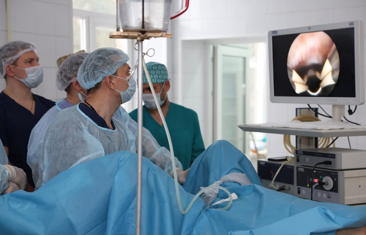 Фото: Министерство здравоохранения Тверской области 26 декабря 2024 года в Больнице скорой медицинской помощи Твери были прооперированы первые три пациента с аденомой предстательной железы методом лазерной энуклеации. Они стали очередным этапом многоэтапного обучения, которое проводится специалистами факультета фундаментальной медицины МГУ им. М.В. Ломоносова для сотрудников урологического отделения больницы.