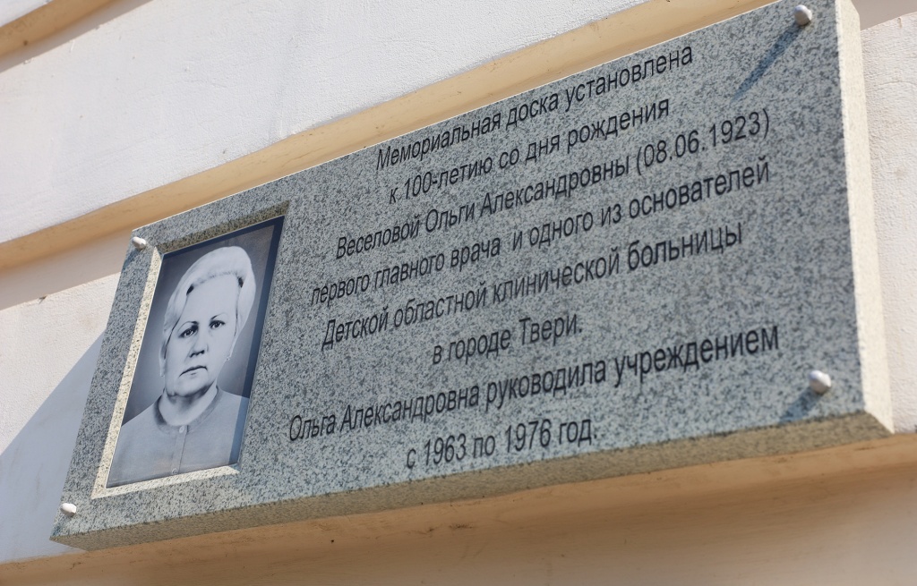 В Твери ДОКБ в память о первом своём главвраче, Ольге Веселовой, установила мемориальную доску. Её торжественно открыли в преддверии Дня медработника.