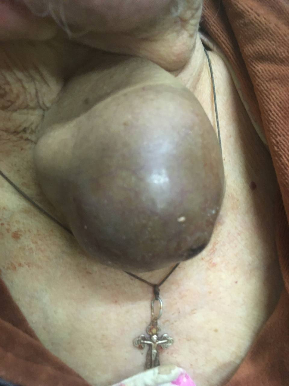 Как сообщает группа больницы в ВК, из-за солидного возраста пациентке отказали в операции в других учреждениях, тем временем опухоль сильно выросла.