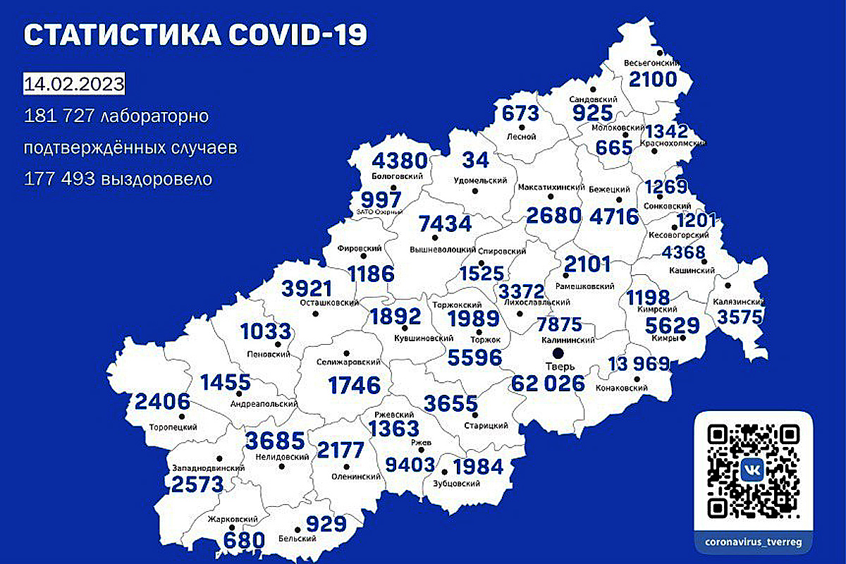 По данным регионального оперативного штаба на 14 февраля, лабораторно подтвержден в Тверской области 221 новый случай заболевания коронавирусной инфекцией. Госпитализировано за сутки 12 человек.