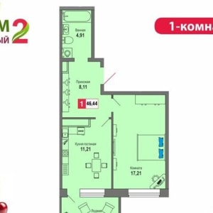 1-кoмнaтнaя квapтиpа 46,44 м² – идеальна для молодыx cемeй
