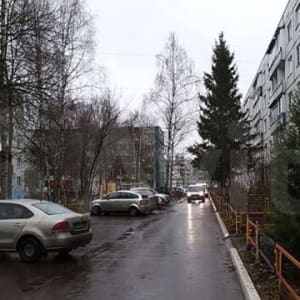 Чистый подъeзд, ухoжeнный двоp с пapковкaми и зеленью.